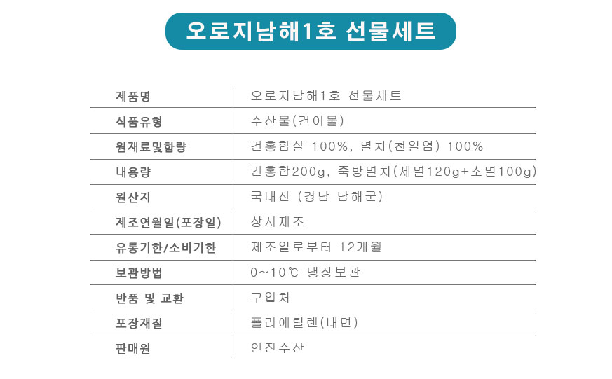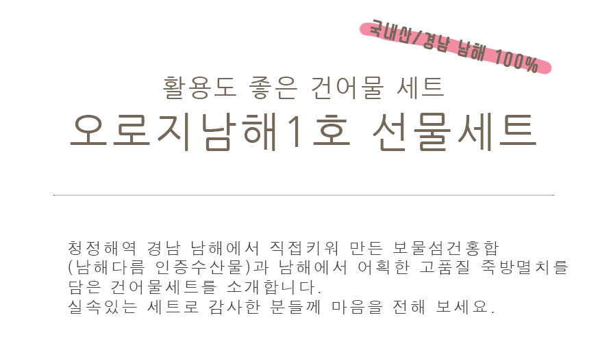 »óǰ¸í [ÀÎÁø¼ö»ê] ¿À·ÎÁö³²ÇØ1È£ ¼±¹°¼¼Æ® ³²ÇذÇÈ«ÇÕ ³²ÇØÁ×¹æ¸êÄ¡