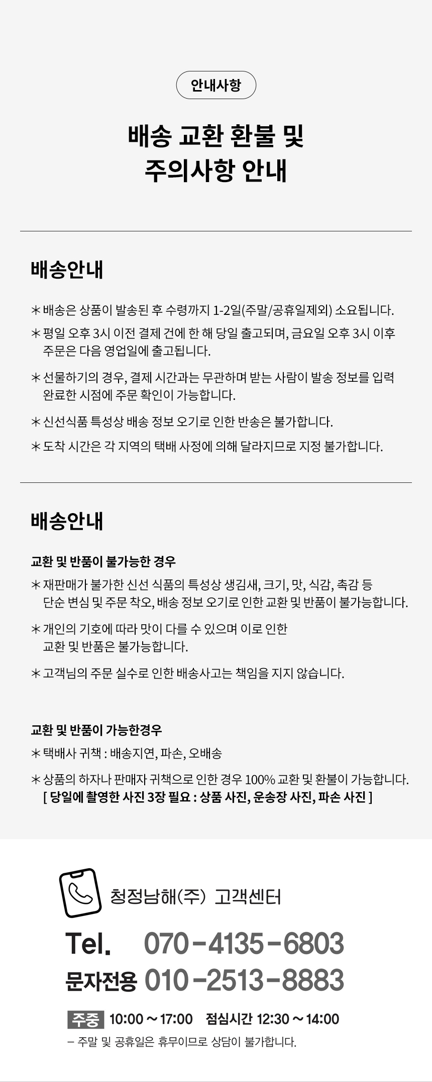 (주문하시는분 성함과 입금자명이 다를시 055-241-9176 으로 전화 또는 남해몰 카카오채널톡으로 연락바랍니다.)