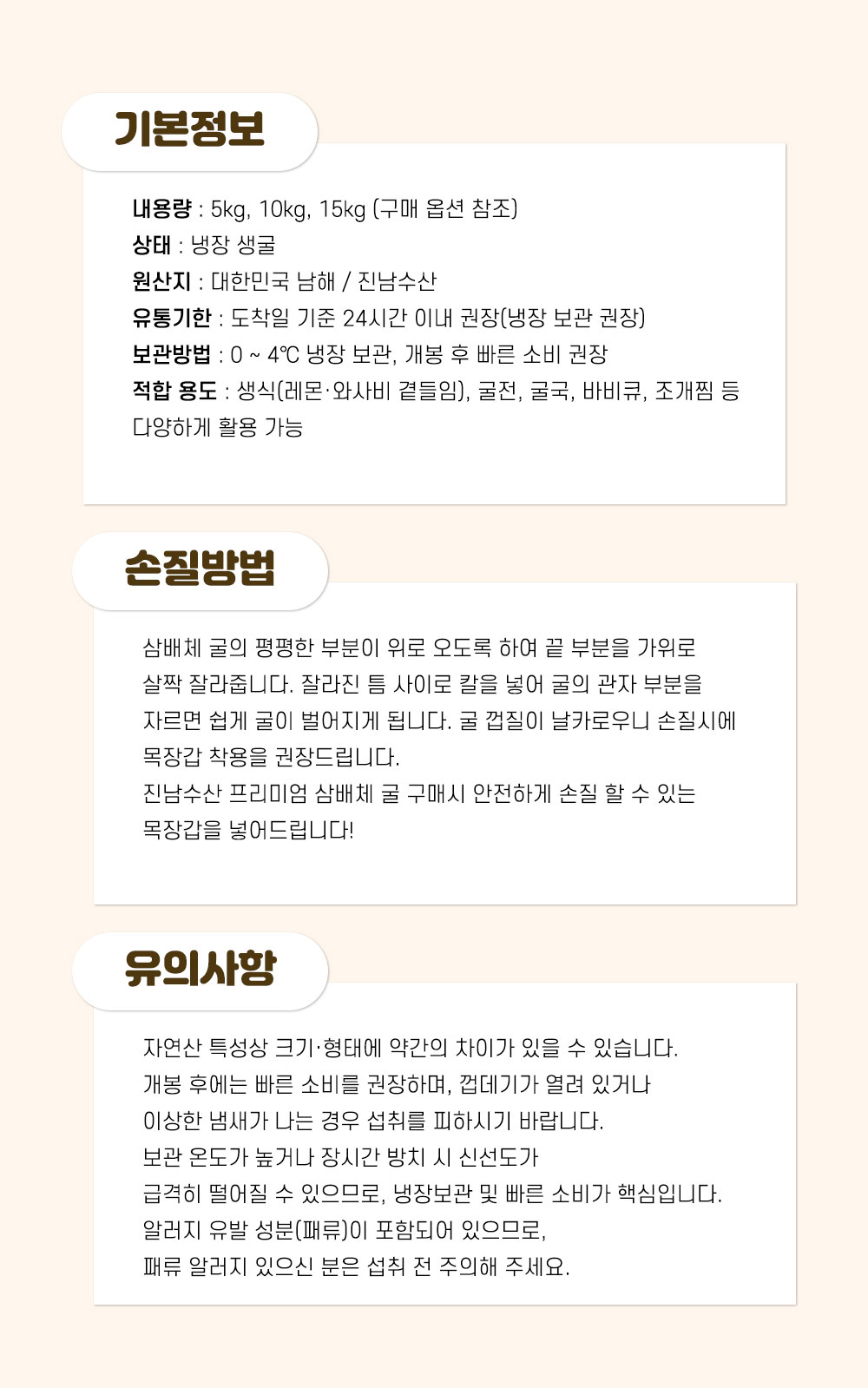 상품명 [진남수산] 남해 각굴, 홍가비리 선택